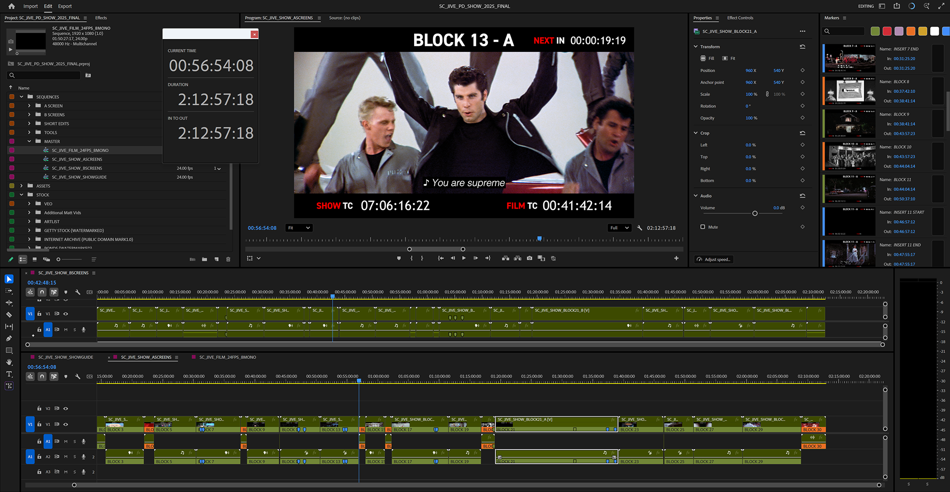 Secret Cinema is back. With live music, a summer fairground and classic American diner-inspired delights, every unforgettable moment and song from Grease unfolds before your very eyes. I was putting together all video content for the show - editing a 3h mixed timecoded content timeline in sync with lighting, sound, and video programmer whilst doing notes from designer and director real-time.
