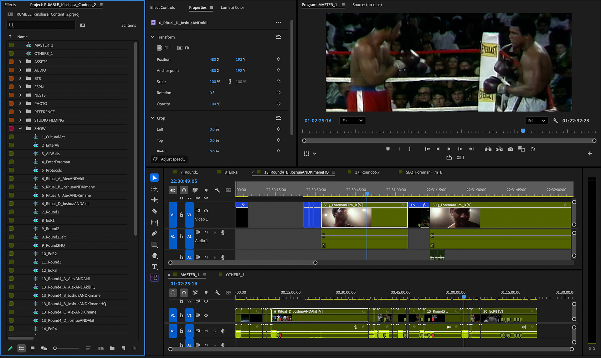 Rumble in the Jungle was an immersive production in London in 2023 that transported its audience to one of the greatest sporting event of the 20th century: the Muhammad Ali vs George Foreman fight in Kinshasa, 1974. I was responsible for putting together all screen content and filming for the show, working directly with all other senior creatives and with ESPN. We ended up creating a two hour long timeline featuring cinematic sequences and archived footage all synced with performers on stage and other departments, all with a frame level precision.